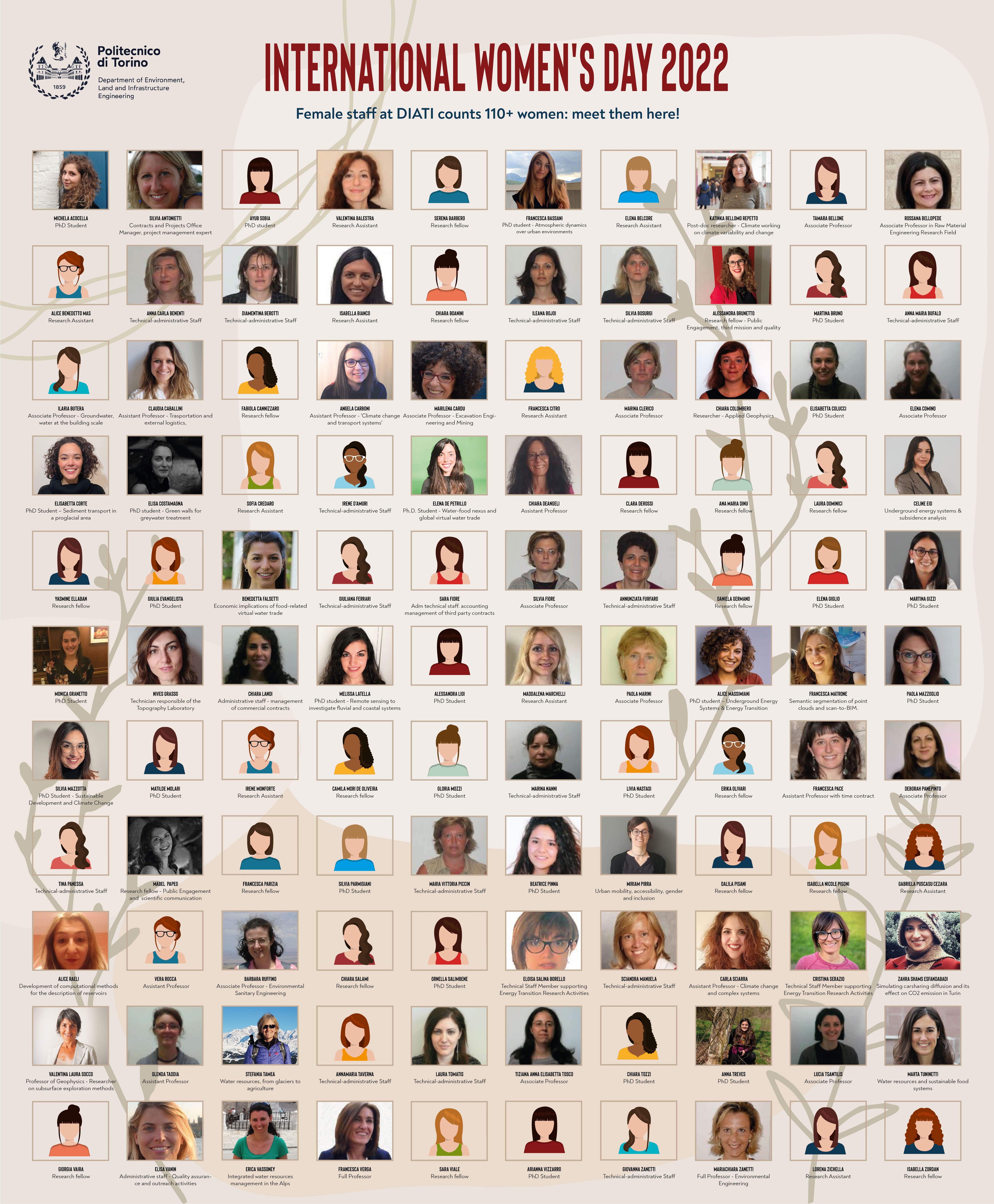 On the occasion of the International Women's Day, the Department of Environmental, Land and Infrastructure Engineering (DIATI) of Politecnico di Torino intends to highlight the wide participation of women in our department.